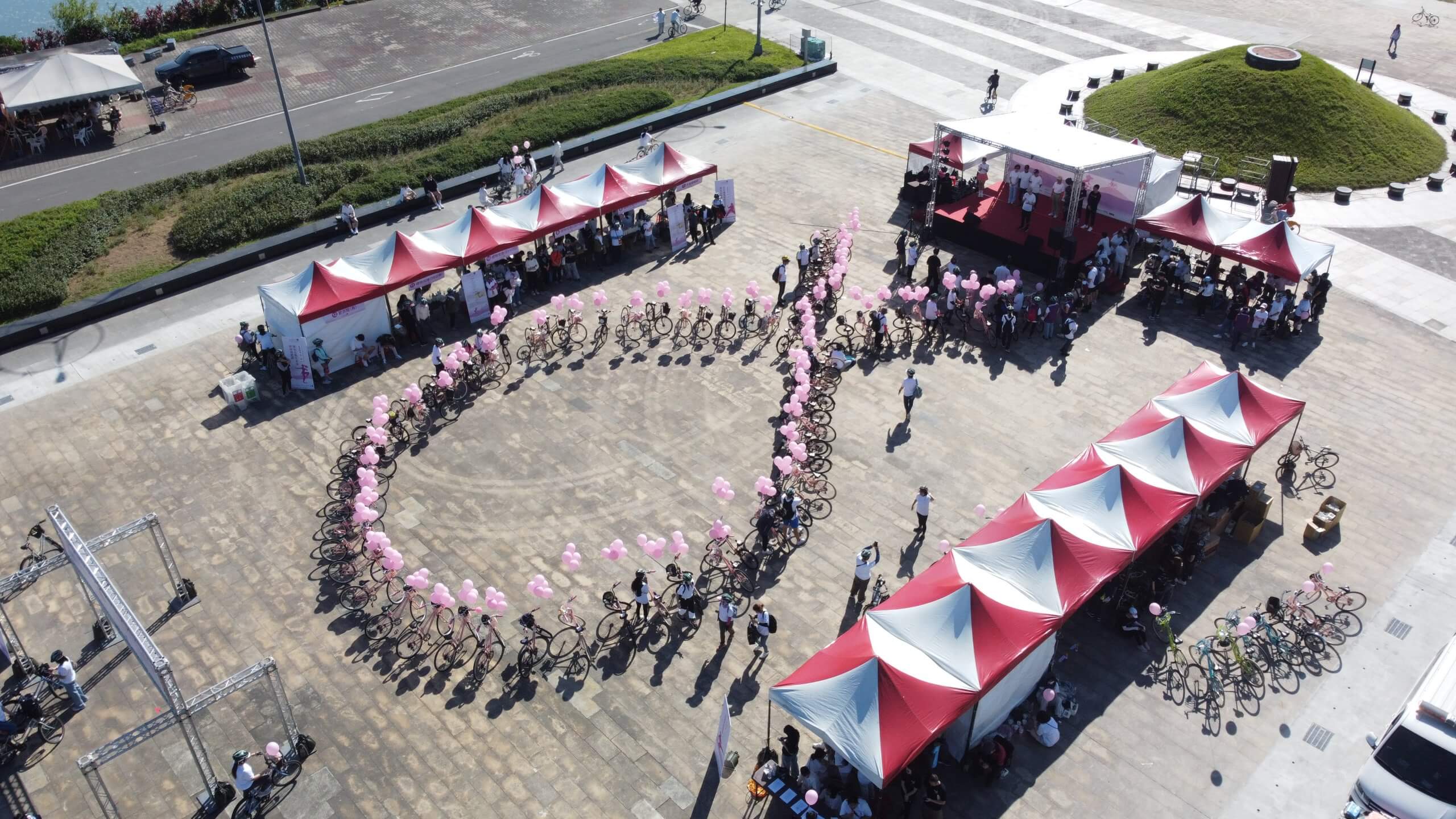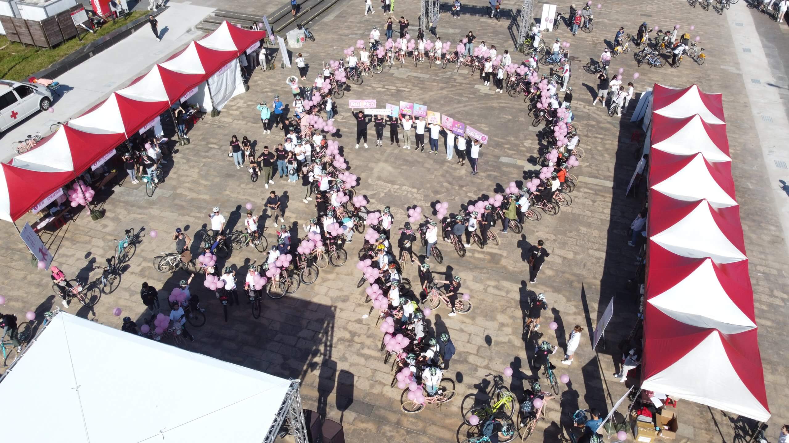 「2024粉紅自行車」活動,由臺灣癌症基金會與長庚醫院向日葵關懷聯誼會攜手合辦,期待透過「粉紅自行車」活動呼籲國人:乳癌可以透過X光乳房攝影篩檢,提早發現及早治療,不只可以降低乳癌發生率,也能降低乳癌死亡率!現場集結超過百位乳癌病友、家屬一起用騎腳踏車,排出粉紅絲帶圖,呼籲共同守護女性健康,同時也提倡運動防癌觀念,鼓勵民眾透過騎腳踏車方式抒發壓力,以降低乳癌發生率,維持規律運動,定期乳癌篩檢,讓身體保持健康體態。對於乳癌病友,適量且規律的運動更能降低治療副作用,降低復發機率,有助維持良好的生活品質。