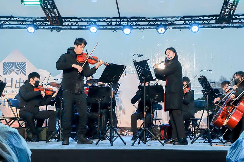 嘉義縣阿里山日出印象音樂會今年邁入第23年,今1日清晨由朱宗慶打擊樂團與樂興之時管絃樂團在祝山觀日平台接力演出,以悠揚樂聲迎接2025年的首道曙光。音樂會自凌晨5點半開演,嘉義縣長翁章梁、立法委員陳冠廷、林業及自然保育署嘉義分署長張岱及阿里山國家風景管理處副處長陳榮欽等人也親臨現場,與遊客一同在樂聲中等待天亮。