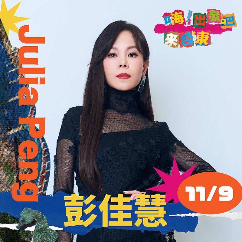 金曲歌后彭佳慧則相當雀躍,非常興奮!好久沒到東海岸演出,距離家鄉屏東到台東只要2小時距離,卻有種特別氛圍很chill、恬靜純樸,至今仍難忘米苔目、炸雞的美味!她也為台東觀光大力呼籲,要樂迷帶著放鬆度假心情、不用太多裝飾,只要一雙布鞋、短褲、薄外套就好,她笑說:「吃的喝的台東都有,只要你來,大聲地跟著我唱歌!」預告會帶來耳熟能詳、能一起唱的歌,相約大家。11月9、10日兩天晚間7點於台東市區海濱公園舉辦「嗨!出發吧來台東」,演唱會由三立電視製播,東風頻道、MTV及三立新聞網同步播出。