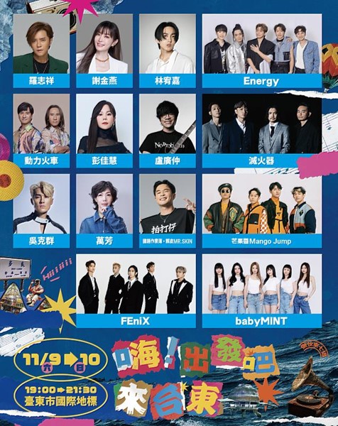 接棒五月天「一路向東」演唱會,台東於11月9、10日推出「出發吧來台東演唱會」,號稱2024年全台灣陣容最堅強音樂節,卡司制霸各縣市的跨年晚會,主辦單位再度加碼第三波震撼卡司,有亞洲舞王羅志祥、流行音樂天王林宥嘉、心靈系歌后萬芳、金曲歌后彭佳慧、新生代女團babyMINT 、國語作業簿DJ秀,加上已公布的謝金燕、Energy、盧廣仲、動力火車、吳克群、滅火器、芒果醬Mango Jump、FEniX,台東縣府邀請幾乎都是小巨蛋開個唱票房瞬間秒殺的天王天后天團,齊為台東的秋冬季觀光振臂高呼,並由夏和熙、DJ圓圓串場主持,希望各路歌迷心動能趕快行動,手刀搶台東住宿及車票。