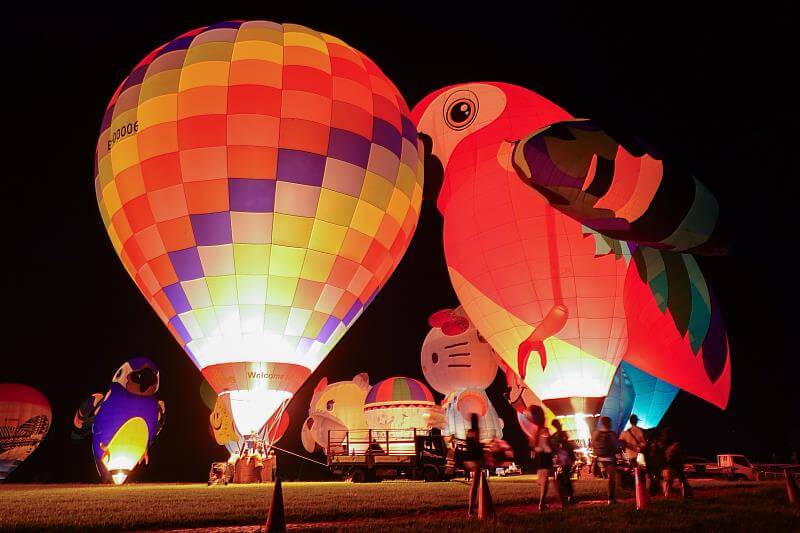 昨晚光雕活動以音樂「星期五晚上」熱鬧開場,臺東在地團隊「卑南青春歌隊」及街舞團體「KEEP DANCE STUDIO」炒熱現場氣氛,球迷期待的熱氣球光雕音樂會以「海、陸、空之動物夜」為主題,由德國海豹奧斯卡、日本小熊貓、英國貝菈狗狗、巴西的鸚鵡等13顆熱氣球搭配無人機及煙火,地面熱氣球與空中無人機相互映襯,三麗鷗明星家族無人機圖案搭配高空煙火綻放天空之際,現場歡聲雷動,場面震撼人心。壓軸演出由本土嘻哈天團玖壹壹唱出多首台式電音舞曲,現場粉絲留連忘返,連兩天的熱氣球光雕音樂會也在全場觀眾歡呼雀躍中畫下句點。