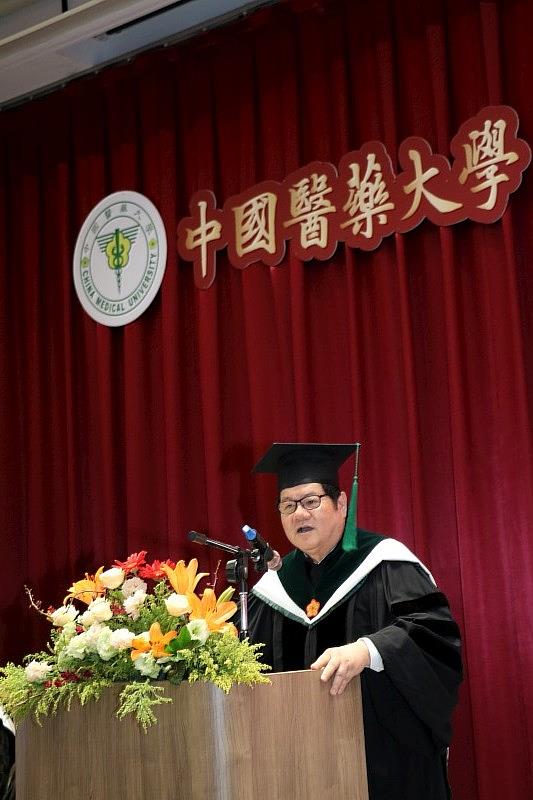蔡長海董事長致詞時表示,未來的世界,充滿機會也充滿挑戰,他相信,中國醫藥大學畢業同學有足夠的能力迎接挑戰,為人類做出偉大的貢獻;面對AI新時代,他期許,畢業同學能跟上世界的腳步,成為三種人,勇於創新改變,成為時代的創新者,永遠追求卓越,成為世界的領航者,擁有一顆溫柔善良的心,關懷別人、幫助別人,做一個有愛的人,成為社會的奉獻者。
