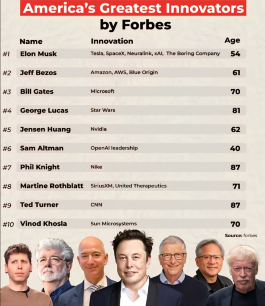 在美國即將迎來建國250周年之際,財經權威《Forbes》推出「Forbes 250:美國夢慶典」專案,首次發布「創新者250強」榜單,選出250位仍在世、但是對於產業與社會方面,帶來深遠影響的創新領袖。