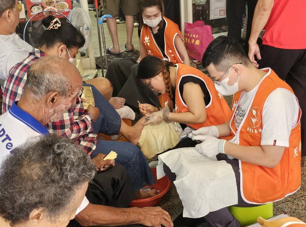 現場義工們,秉持真誠善良付出,把長輩們當成自己的家人來服侍,親自為每一位長者修剪手足指甲、刮腳皮、去角質與理髮修面,讓所有前來的爺爺、奶奶們倍感舒適溫馨,大家是有說有笑的,現場充斥著一片溫馨和諧氣氛。「新北市共好慈善協會」並以回贈獅子會感謝狀乙份,對於今日如此用心為社會弱勢族群服務,表達萬分感謝之意。