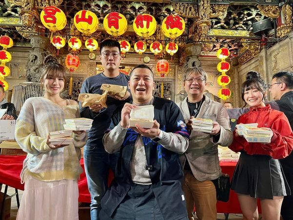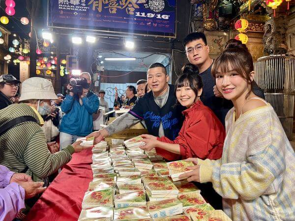 現場「電玩女神」陸子玄、「零死角女神」林岱縈也到場擔任志工,幫忙發慶祝祭品,草爺也笑說,宮裡有尊王坐鎮,宮外還有女神讓活動更熱鬧。發放過程中,林岱縈看到是遠從彰化親送上台北的超有名「阿讚豬腳」不僅便當捧在手掌心上還是熱的之外,還一直聞到豬腳的香味,讓她也好想去加入排隊的行列;陸子玄則是說,大家吃到的還有唯一被米其林推薦的虎咬豬「源芳刈包」真的是超幸福的。