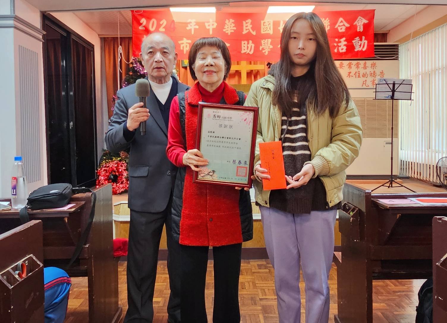 「中華民國婦女聯合會.新北市分會」,體恤今日社會環境變遷,食、衣、住、行等民生生活壓力大,看見許多貧困家庭學童,在求學過程中,缺乏穩定的就學資源,不少家庭為了生活經濟打拼下,而無力再行支出更多的子女教育需求。今日婦聯會舉辦「113學年度高中職學生就學補助金頒贈」,安排由新北市分會主委 李妙梅女士主持大會並致詞,隨後親自將愛心助學金交付到學童手中。