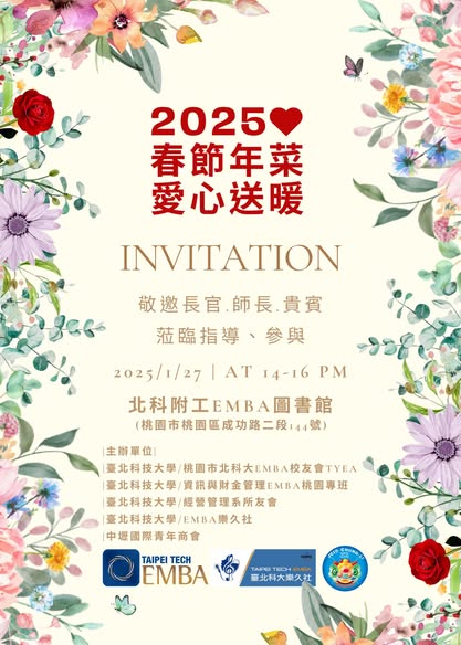 這場「愛心送暖」活動不僅為2025年的春節增添了一份溫馨與感動,更彰顯了北科大EMBA師生對社會的無私奉獻與堅定承諾,為公益行動樹立了典範。樂久社將這場活動的成功進一步凸顯了校友與學生之間深厚的連結,並讓社會見證北科大EMBA對公益事業的持續投入與深遠影響。