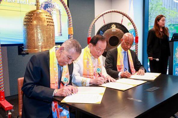 為響應聯合國國際和平日,世界之愛和平總會會長洪道子博士率親善文化訪問團,於9月19日至24日在紐約舉辦多項和平活動,並舉行世界之愛和平鐘鳴鐘儀典,幾內亞前總理Cellou Dalein Diallo、剛果民主共和國區域整合部長Didier Mazenga Mukanz等21位各界領袖鳴響和平鐘為世人祈福。
