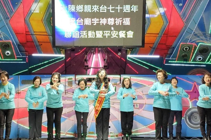 大陳鄉親70周年慶,主辦單位除了精心安排豐盛的大陳美食佳餚,還搭配著每場精彩的歌舞表演,讓現場氣氛熱鬧滾滾。鄉親們是大快朵頤,重溫家鄉的味道。此外,歌唱舞蹈表演更是精彩繽紛,熱情舞蹈接連登場,台下掌聲與歡呼聲此起彼落,氣氛嗨到最高點。首先由副主委 曹玲玲帶領沈月香、鄔淑怡、林秋玉等十三位成員,以手語歌表演「感恩的心」開場、電視台名演員 周又珈演唱「美麗的玫瑰花」、大陳鄉音合唱團表演「我大陳我驕傲」、秦怡業Haugon 以「民歌演唱」獻藝,以及陳文娜老師與鄭雅謙老師的「梁山伯與祝英台」戲曲表演,表演項目眾多,琳瑯滿目。